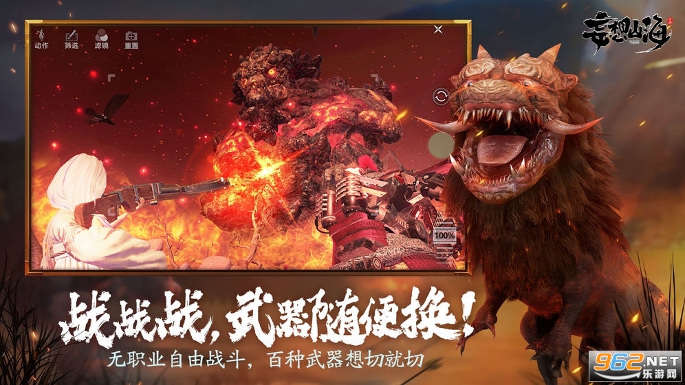 自由战斗是要给每个玩家每个角色都带来充足、自由的战斗体验,而不是单一化每个角色的战斗定位而让治疗和防御角色只有挨打的份。“别看我现在是个治疗的角色以为我好欺负,下一秒我切到长刀也能让你见识一下什么叫爆炸输出”。你可以爬上高地60米开外对怪物连射猛攻,快速近身怪物切换近战多个技能打出漂亮连击,及时闪躲寻找掩体规避伤害,感受超过百种武器加持下的多样化战斗乐趣。《妄想山海》手游解除了传统游戏职业的限制,也让玩家可以有更多的手段、策略投入到战斗之中,灵活应变,即使战力不高也可以通过团队配合战胜巨兽,即使战斗力评分不够也可以通过技巧搭配戏耍对手。
