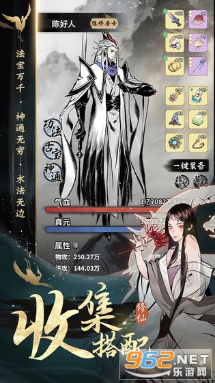 法宝万千,神通无穷。你可以通过探宝、打造等方式获得万千神兵利器和法宝。根据自己修行的方式任意搭配,走出自己独一无二的修仙路。