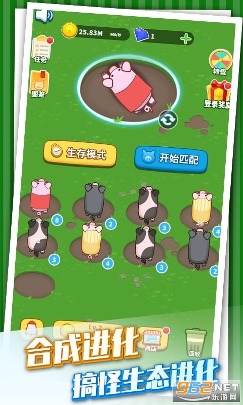 一款好玩的休闲合成游戏,养猪专业户游戏中玩家可以养各种可爱的猪猪,有超过50多种萌猪猪,玩家通过合成高等级的猪猪可以赚取红包奖励哦。