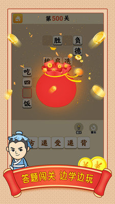 小牛猜成语,再晚学成语也不迟,应用内所有成语参照成语词典详尽解释成语,说明成语出处,再学成语的同时也能了解到成语背后的故事。一步步考验你的成语储备,挑战你的脑力极限。边玩边学,寓教于乐。成语闯关的过程中还能解锁多种玩法,不仅能加官进爵,买屋置地,还能获得丰厚的奖励。