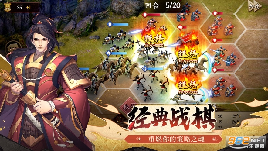 《策魂三国》是一款六角战棋游戏,真正还原大规模战场战斗。游戏中玩家扮演一个创建霸业的主公,以称霸全国为主要目标与游戏种的各种势力作战。游戏主打战棋策略,拒绝无脑,只有优秀的指挥官才能获得胜利。