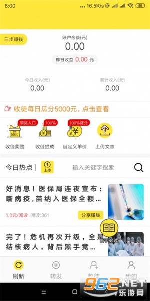 2、登录成功后,点击“转发”频道任选一篇文章转发到即可,转发前记得先去设置下转发单价