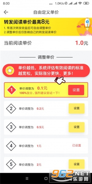 1、新用户下载注册腊梅网app就送1元,转发阅读单价0.2元至8元;默认单价为1元(可以自己设置单价)