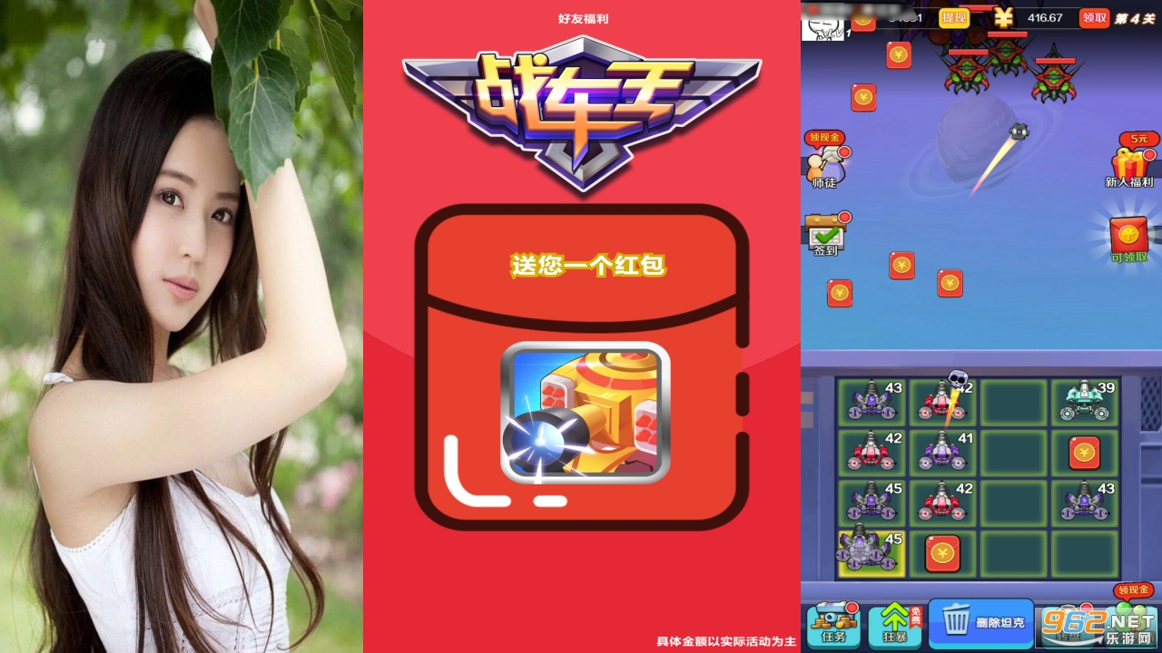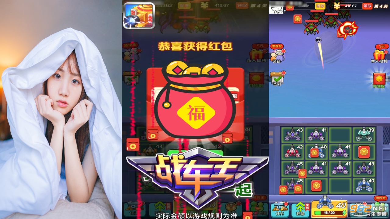 非常简单的射击玩法,轻松上手,不断滑动,让你的战车去打红包,打下来就是你的了