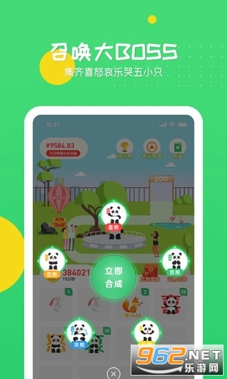 合成熊猫来赚钱的一款网赚休闲小游戏,玩家在游戏中养成各种不同特色的熊猫,完成日常的任务就能够赚取丰厚的红包现金奖励哦!