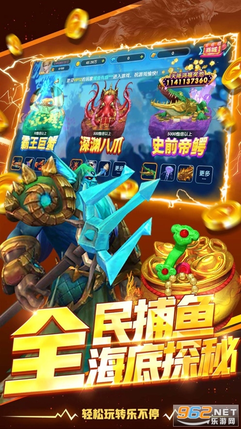 全新视角,全屏boss,暴爽捕鱼再升级,百万倍炮,一炮直上百亿金币不是梦。捕鱼新场景,体验绝不重复,上天入地打boss。