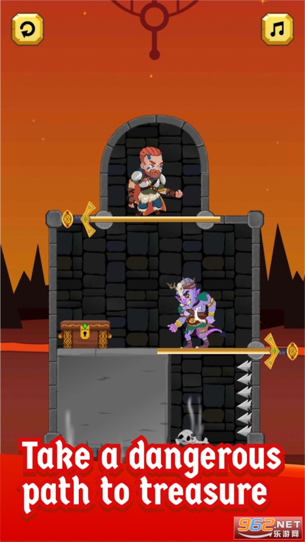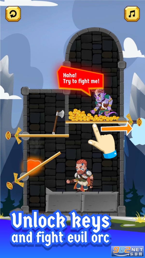 《抖音救救维京国王游戏》是一款闯关休闲手游,玩家扮演英雄来营救出国王,抽动铁棍即可开启游戏,玩家需要消灭掉怪物,躲避陷阱,找到钥匙,喜欢益智类游戏的玩家来下载吧。