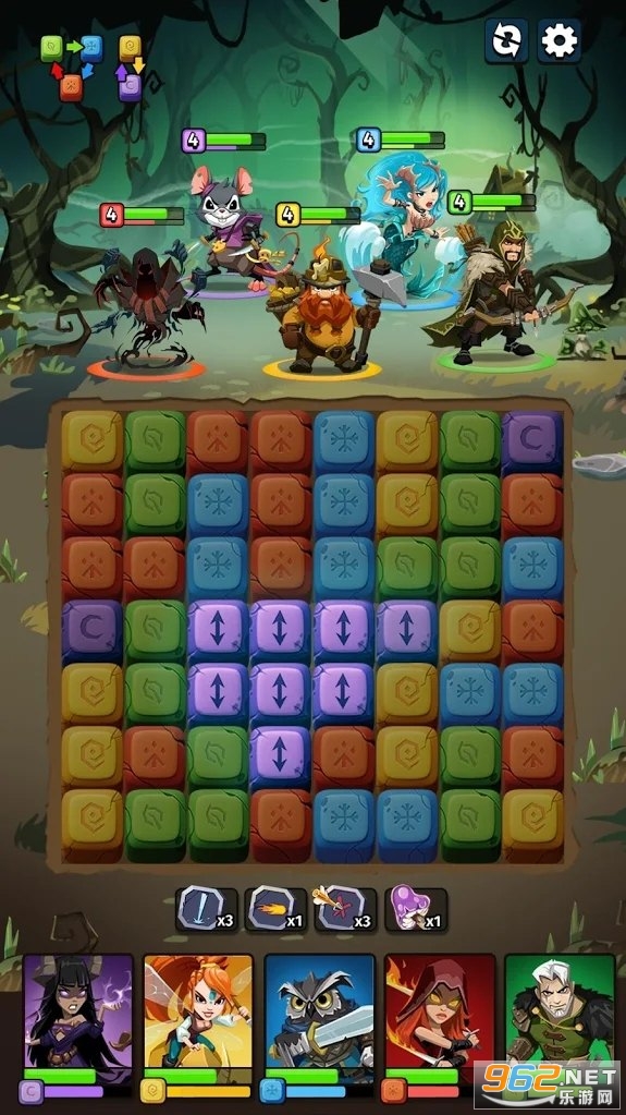 一款非常有趣的消除冒险游戏,游戏中玩家将不断的招募更多的英雄加入你的队伍,不同的角色有着不同的特性和技能,不断的完成消除,不同的颜色对应不同的英雄,游戏的操作简单容易上手,还有着丰富的挑战等待着你,推荐给喜欢冒险游戏的玩家。