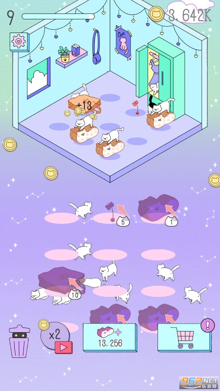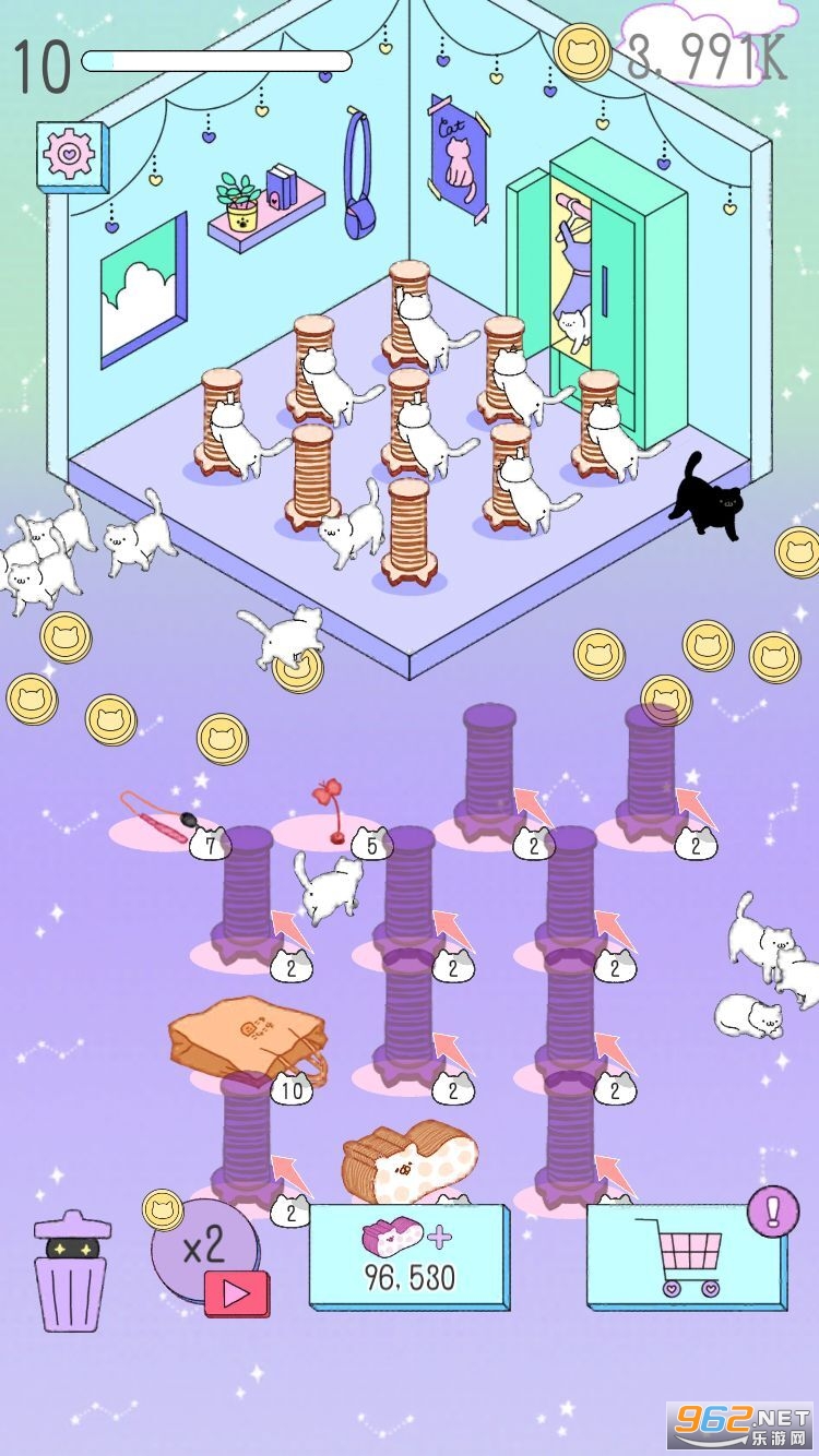 趣味的合成休闲游戏,玩家可以将猫咪合成来获得新品种的猫咪,众多猫咪图鉴等着你来收集,玩家还可以解锁各种道具来装饰房间,和猫咪互动,喜欢的朋友可以下载试试。