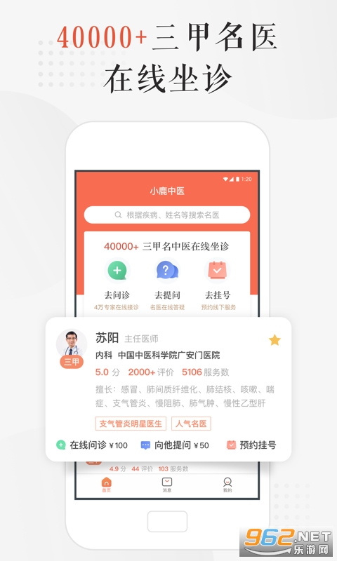 《小鹿中医app》是一款实用的手机健康软件,包括在线问诊,送药到家,预约挂号,健康商城,专属客服等服务,平台上有数千位三甲医院的中医医生为大家提供服务,能够让你更加轻松,方便,专业的寻医问药,需要就下载吧!