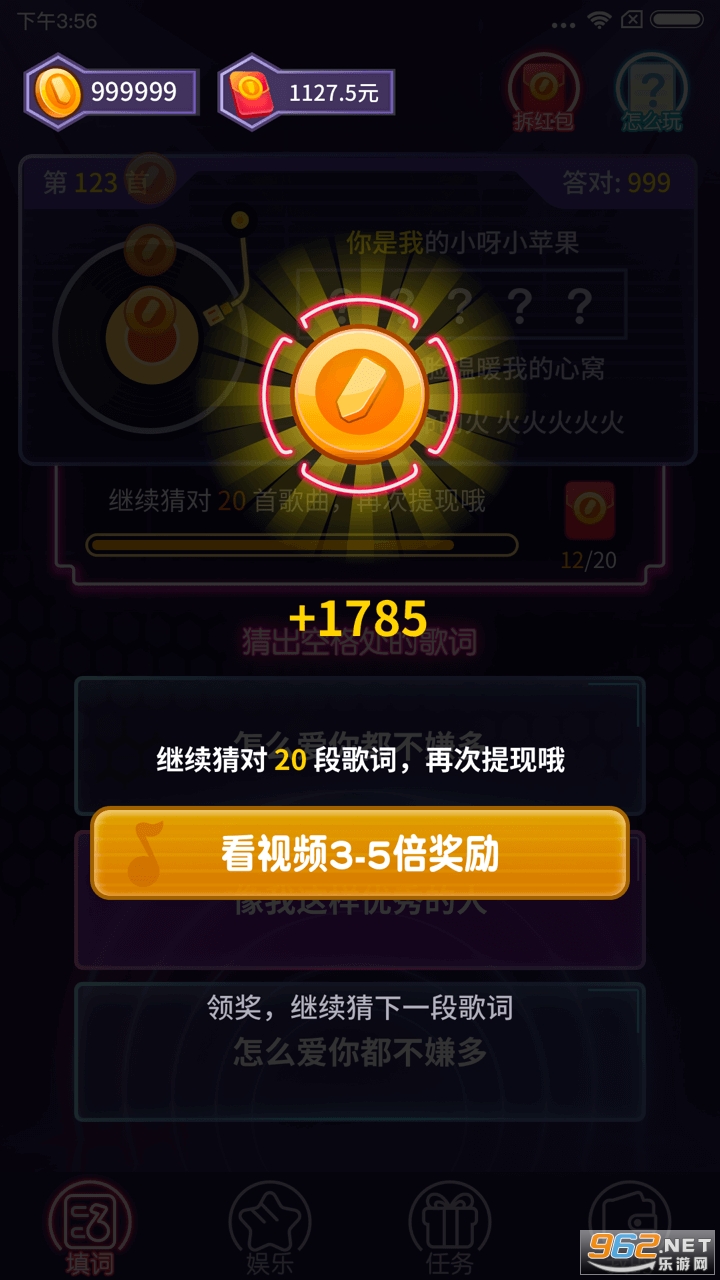 6、操作简单,只要听歌曲片段,填写缺失歌词部分,答对后就可以通关了。
