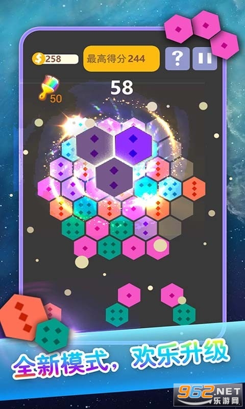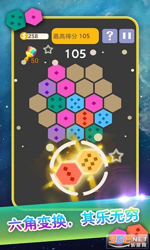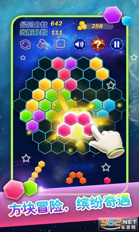 《消灭六边形》是一款火爆的消除类休闲游戏。玩法有点类似俄罗斯方块,1010!,耐玩程度超过2048!没有时间限制的,轻松畅玩,休闲时间的必备良品。
