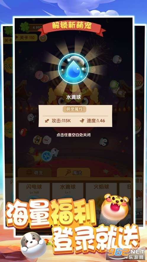 3、玩家可以通过解锁更多的萌宠,和提升萌宠的等级来增加伤害,进而更快速的通关;