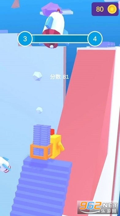 1、将收集的砖块放在楼梯上,然后连续爬上去。到达平台后,您可以停留一小段时间;