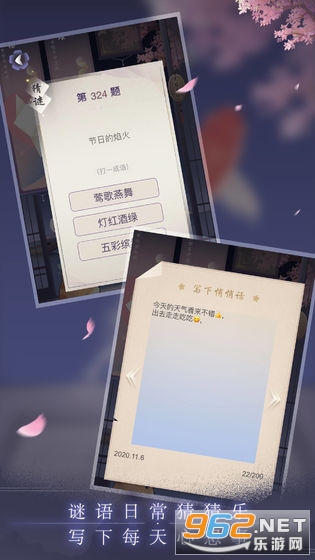一款非常有趣的休闲放松游戏,游戏中你可以和小猫咪一起享受悠闲的生活,在游戏中你可以挑战有趣的小游戏,叠纸、连线、放花灯等等。游戏还兼具了手账树洞功能,将你的生活记录在其中,推荐给喜欢休闲游戏的玩家。