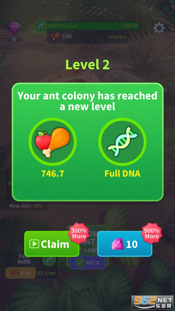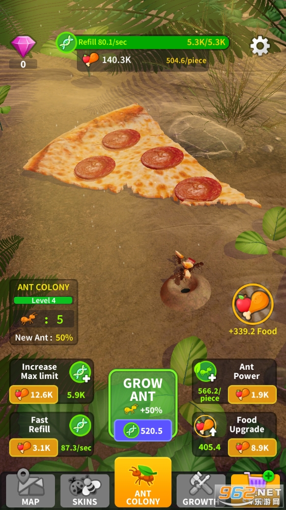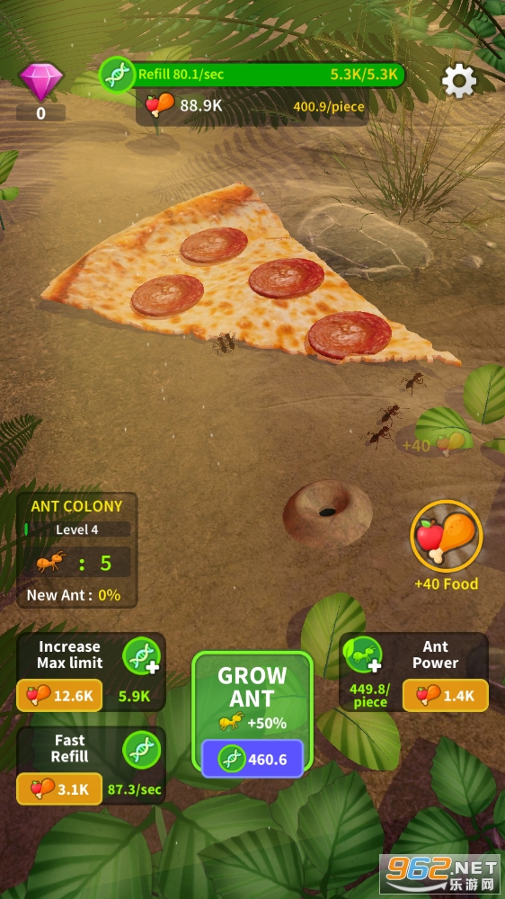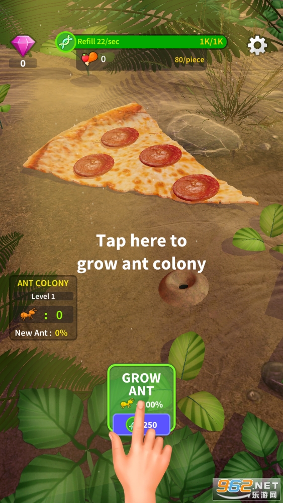 游戏修改了无限金币,拥有大量的蚁种可以让你解锁,不同的蚁种拥有不同的技能,在搬运食物的时候也会展现出不同的力量,操作很简单,可以让你通过游戏重温儿时观察蚂蚁的美好时光,尽情打发时间!