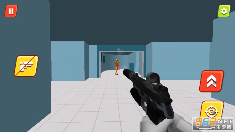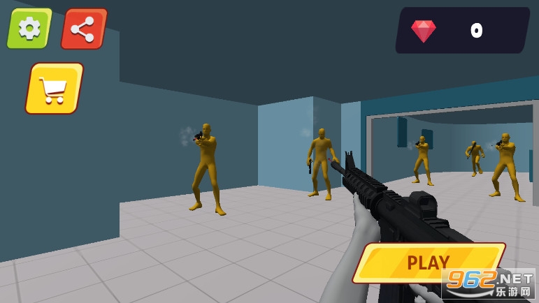 《慢动作躲子弹手游》是一款有趣的橡皮人模拟动作射击游戏,游戏采用的第一人称视角,在这个迷宫中会有很多的模型人,你要击败它们,从他们的手中抢夺枪支,然后去射击,每一支枪的子弹都是有限的,所以你要不断的干掉敌人,拿到枪。