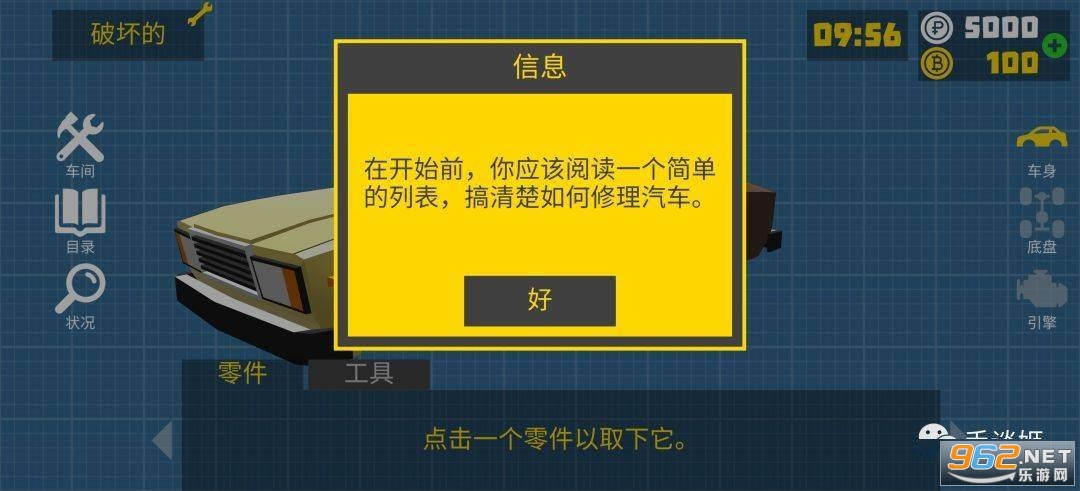 你需要根据客户的表述找到汽车的故障零件,然后用各种工具修复。