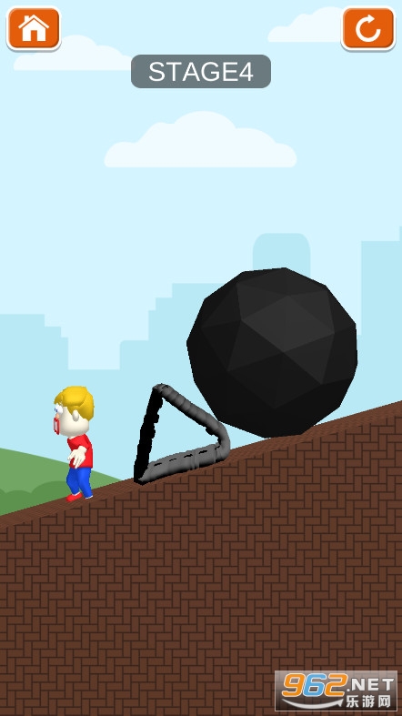 4、画出阻止巨石滚落的道具,游戏前期关卡提供解谜思路。