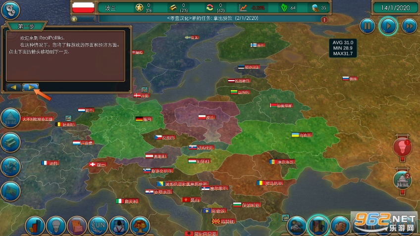 《真实政治2中文版》是一款即时策略模拟经营类游戏,让你扮演国家的领导人,可以自由的选择自己领导的国家,进入到游戏中,通过从竞技,战斗,外交等各个方面,来治理管理你的国家,解决面临的各种危机,帮助你的国家走向强盛!