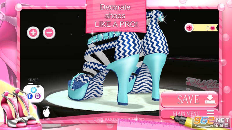 趣味的高跟鞋模拟设计游戏,游戏中玩家可以自由的去设计不同样式的高跟鞋,有着众多不同的模板、装饰等可以选择,自由搭配组合,打造自己喜欢的高跟鞋,适合女孩子玩。