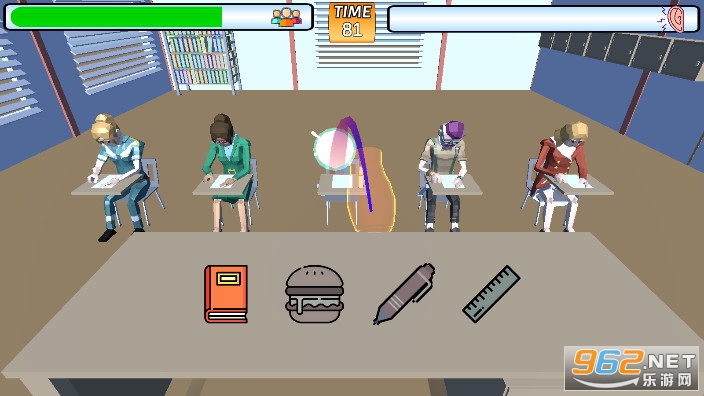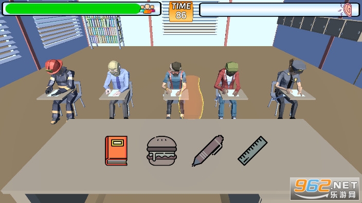 《课堂起哄中文版》是一款有趣的投掷游戏,游戏采用的低模卡通画面,游戏中玩家是考场的监考老师,考场上有多名考生,他们会有不同的需求,书本,汉堡包,尺子,钢笔等等,看准学生们的需求,然后投掷出去,抓紧时间哦,不要超时。