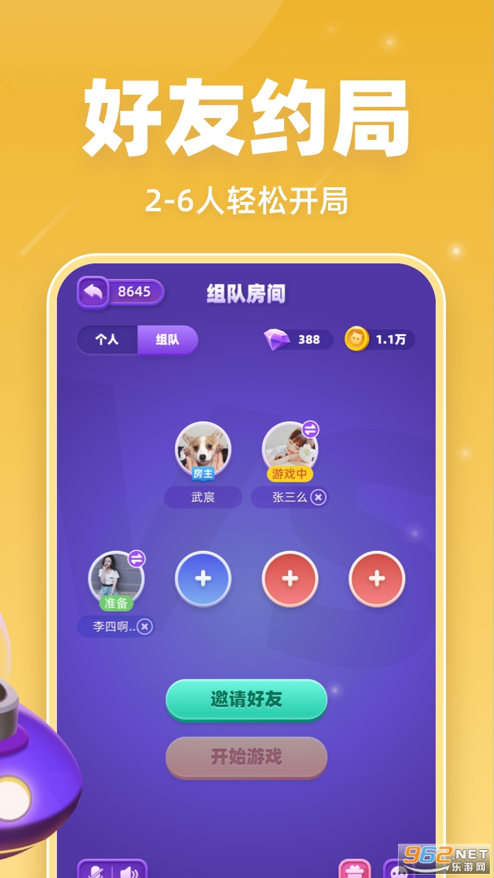 好友约局,轻松游戏:没有人数限制,2-6人轻松开局。线下聚会就玩这个。