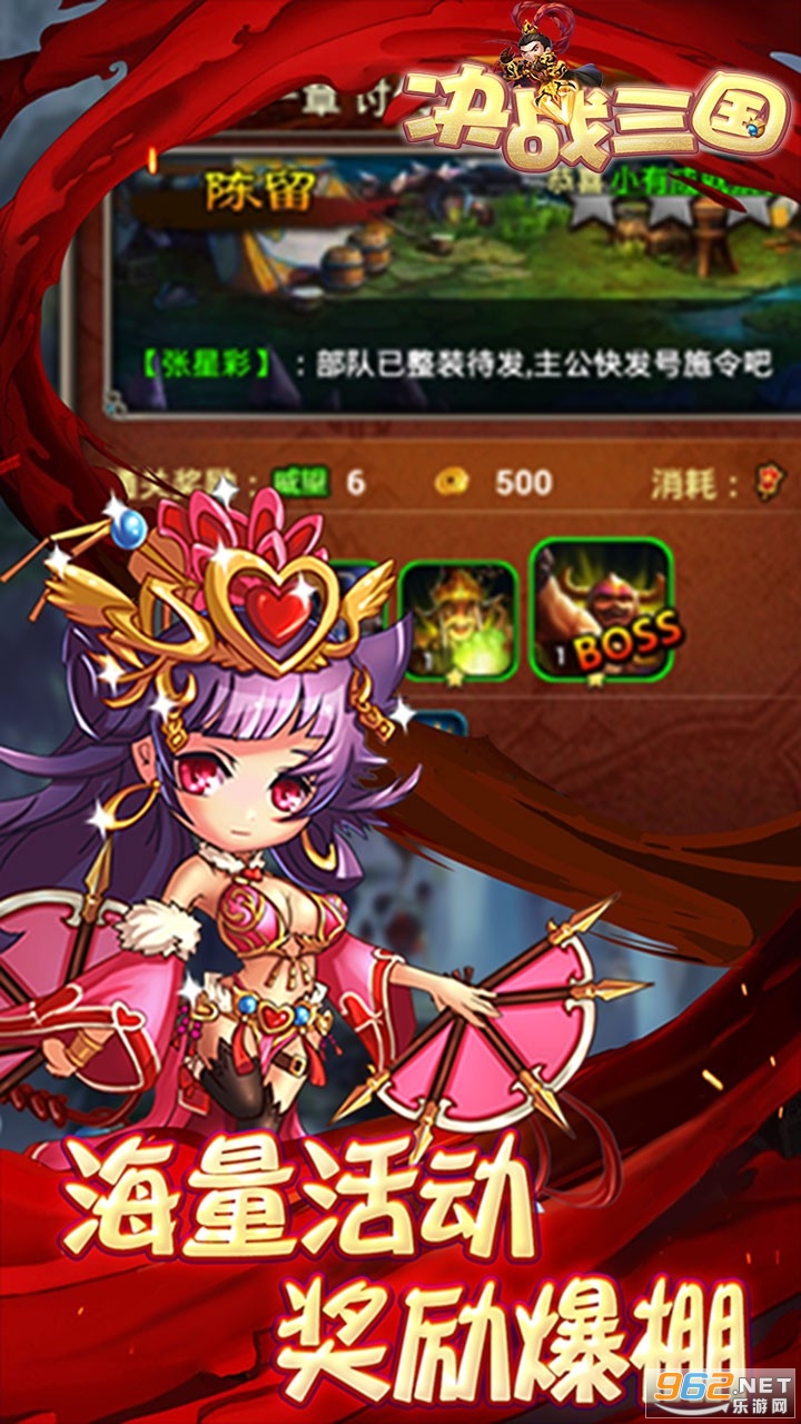 决战三国是一款以三国世界为主题的游戏,独特的操作,更加方便省事的战斗模式,游戏拥有超强打击感,能带给玩家一场最真实的三国畅游之路。在这里,你要加入多种战斗之中,这是讲究战斗策略的一款游戏,独创战斗连协特色玩法,让你加入一场梦幻战斗之中,即可操作,享受尽情作战带给你的战斗感。