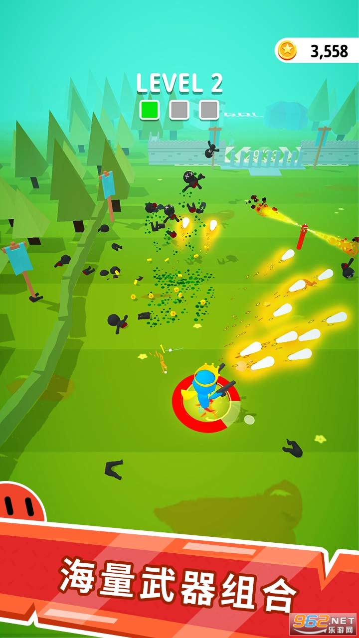 游戏的玩法操作简单,极易上手,魔性十足的游戏玩法让整个游戏乐趣十足,丰富的关卡挑战,对应着不同的游戏难度,让大家在这里疯狂的移动,尽情的释放技能,体验无尽的射击快感!