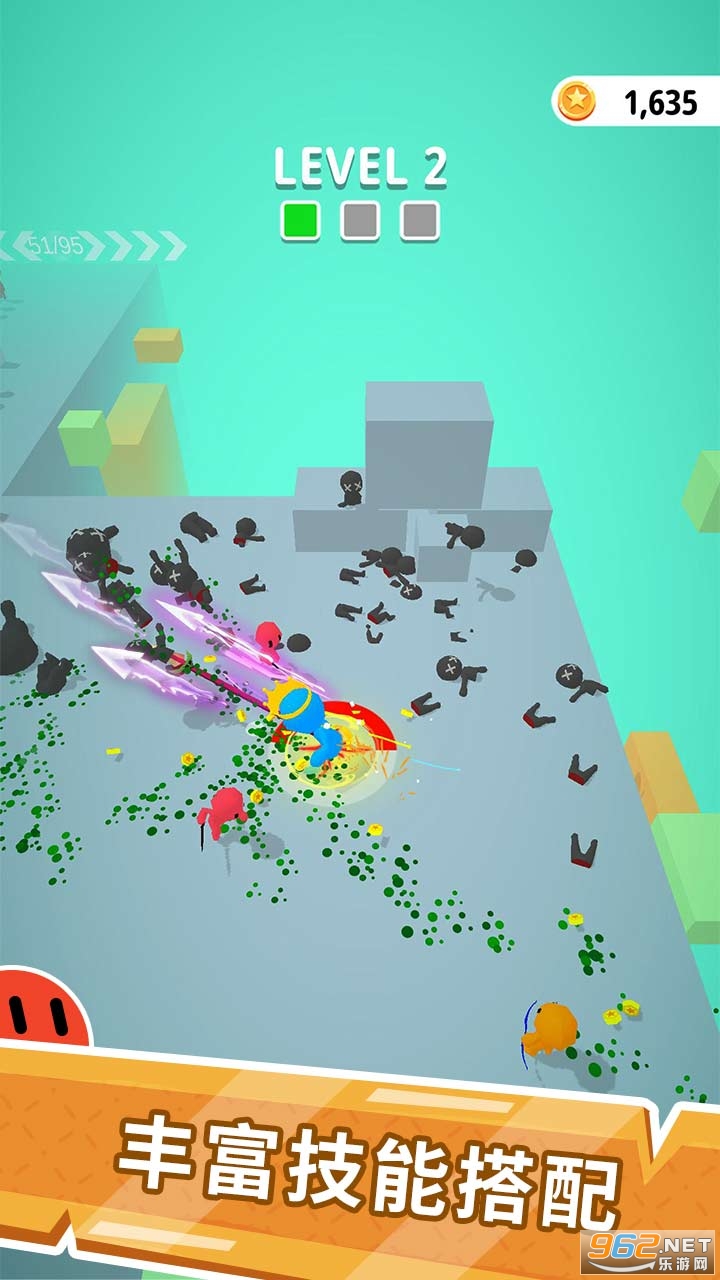 2、向着关卡终点的奋进,用你的棍子推开路上的全部敌人!