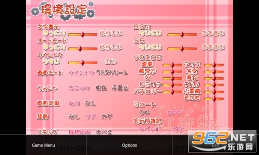 全局选项菜单里的设置会影响你所有的游戏,游戏中的菜单是由游戏脚本控制,只会在当前游戏中生效。目前没有每个游戏各自独立的设置。