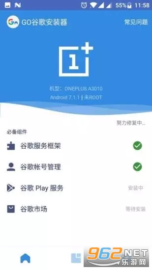 智能一键安装谷歌服务框架、谷歌破解市场和谷歌账户管理,谷歌完美三件套让你的安卓游戏运行有所保证