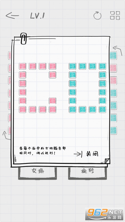 《纸面魔方小游戏》是一款益智烧脑趣味魔法闯关游戏,游戏的玩法利用了魔方的理念,在游戏中玩家要旋转小方块,并且交换,你要实现最终两边的魔方是同一个颜色的目的,这样你才能成功闯关,操作起来很简单,但是真的很有挑战性。