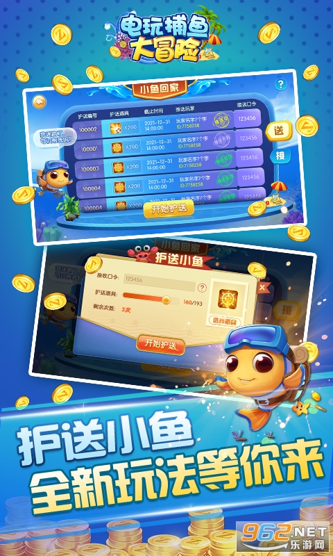 《电玩捕鱼大冒险》带你深入海底世界,探险各处捕鱼秘境;爆金币!捡弹头!福利不停,惊喜不断!