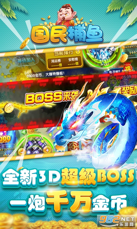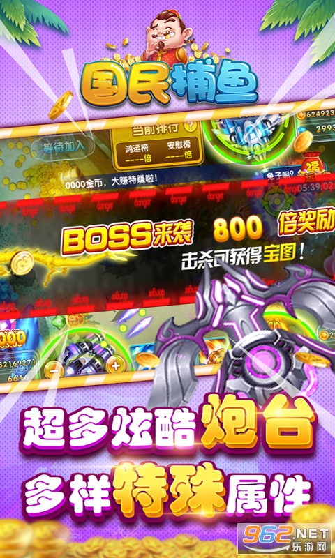 万炮轰炸,爆屏刺激,轻松直升功能让你打造强力炮台捕鱼所向披靡!