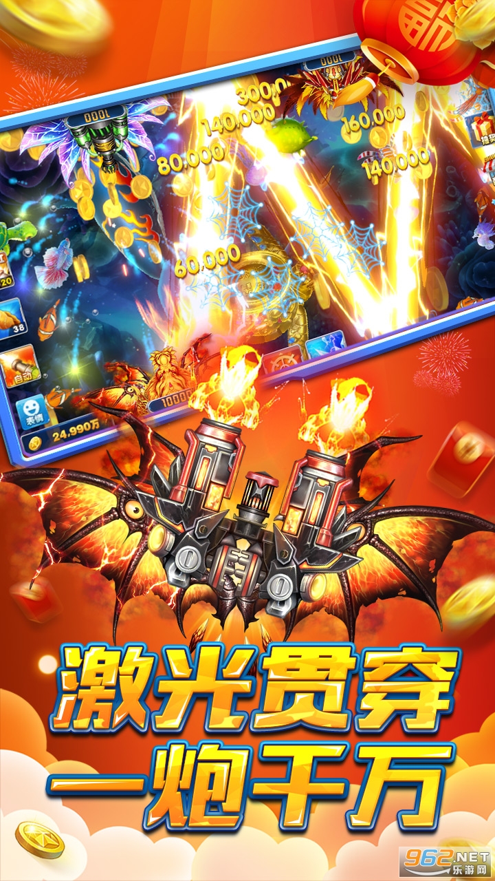 游戏厅经典街机捕鱼风格,100%还原绚丽画面、万倍炮台,爆机变土豪。