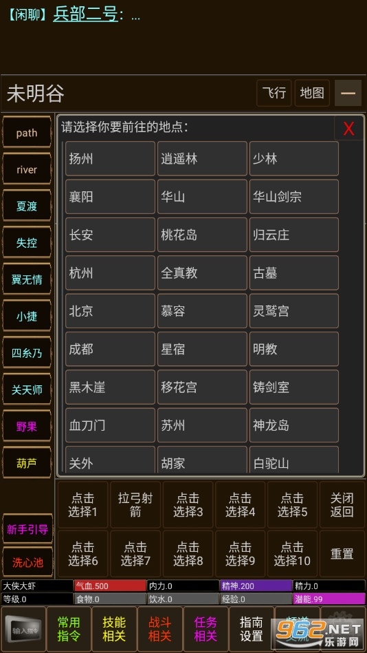 武侠题材的纯文字挂机游戏,玩家可以自由的探索桃花岛、峨眉、武当等众多的地方,可以建造自己的家园,可以建造帮会,可以打坐练功,不断提升实力,成为一代大侠。