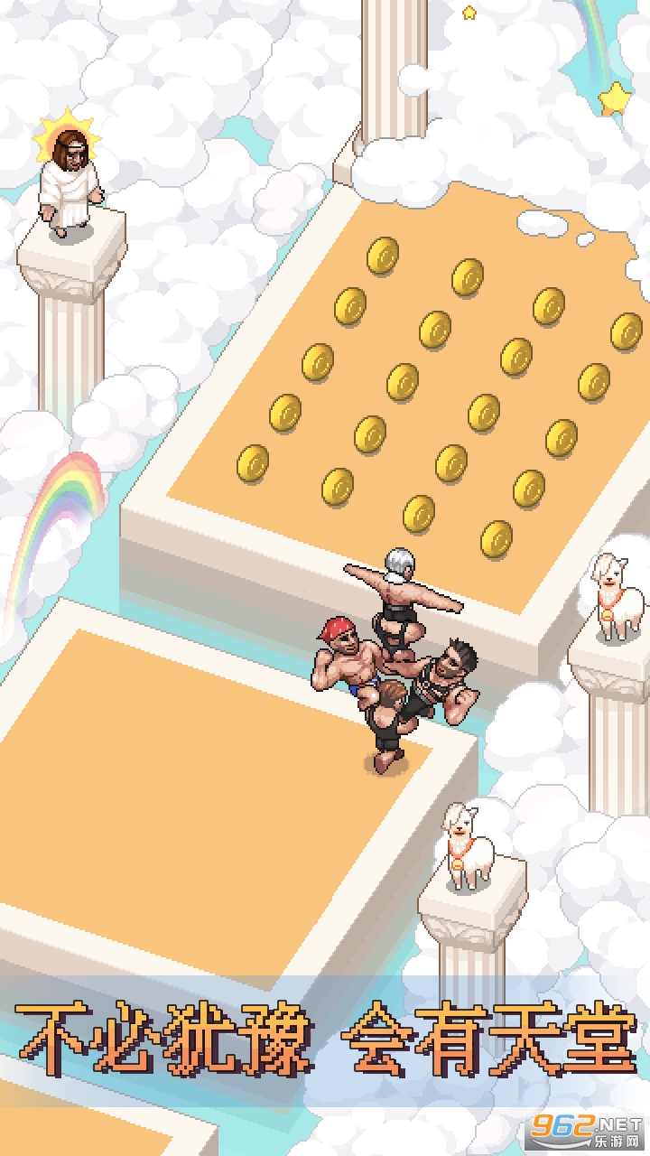 趣味的像素休闲游戏,玩家可以控制肌肉男去奔跑,可以跳跃到遇见的人身上堆叠在一起,敏捷的走位躲避攻击和陷阱,可以利用金币去建造大楼,和众多的兄弟们一起生活,喜欢的朋友可以下载试试。