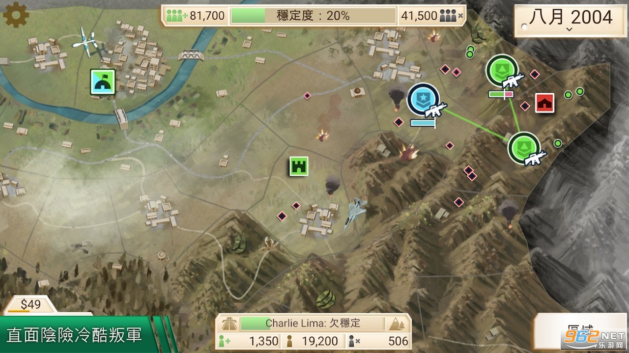 一款非常有趣的政治军事模拟经营游戏,游戏中玩家需要保持国家的稳定,你需要同时安抚各方势力来进行妥协,不断的获得更多的支持,对抗叛军,最终让整个国家稳定和平下来,游戏中你还需要处理各种突发事件,推荐给喜欢模拟经营游戏的玩家。