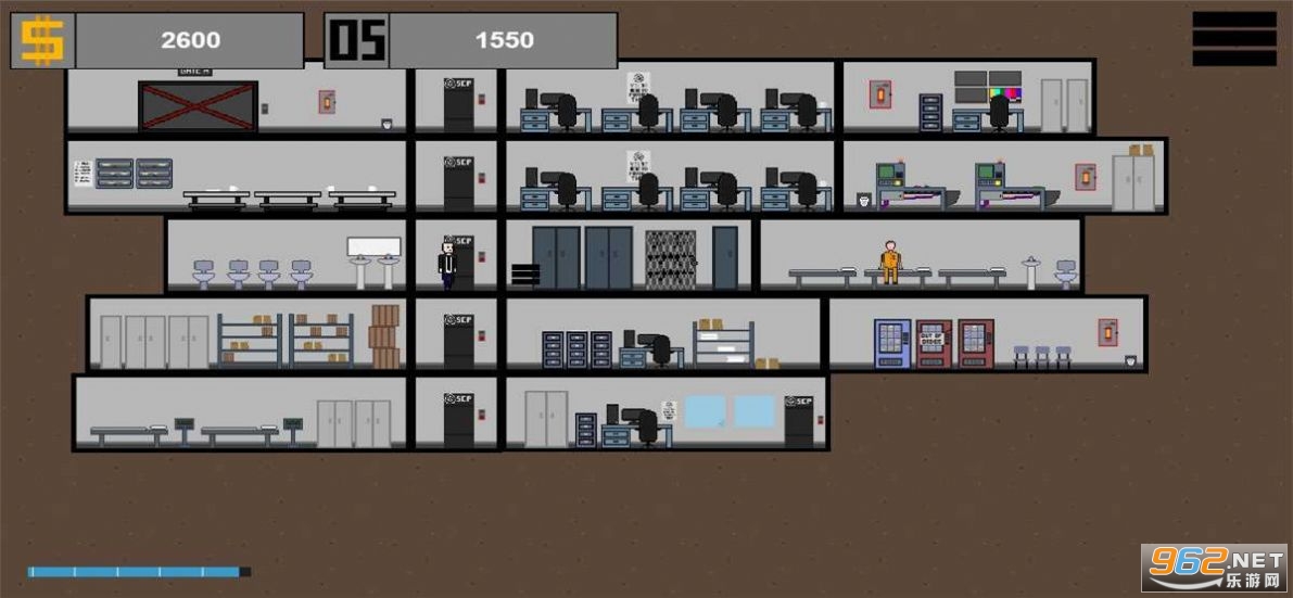 scp建造者收容是一款完全没有任何恐怖画面的冒险闯关游戏。虽然是像素的游戏画面,但是惊悚的背景音乐和神出鬼没的scp,还是能让你在游戏的时候起一身的鸡皮疙瘩。
