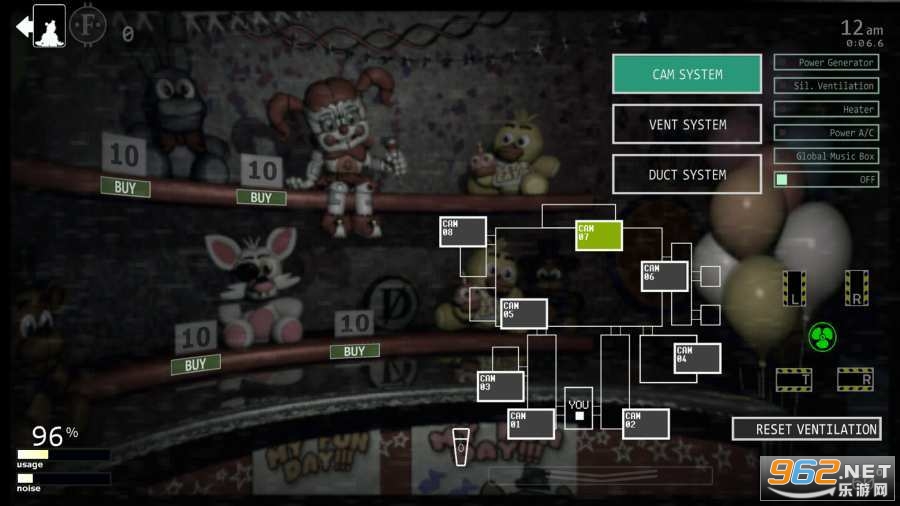 3.小心翼翼的不要让自己受到玩具熊的攻击,成功的活过5个夜晚就可以让你逃离这里。