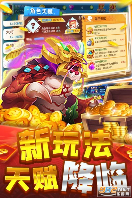 得到残片,合成高级藏宝图,打开海底宝藏,翻一翻,丰富奖励等着你嗨!