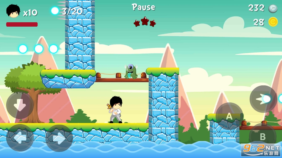非常好玩的一款闯关冒险游戏,横版闯关,可爱的卡通画面,玩家在游戏中越过各种困难和阻碍进行冒险,有很多有意思的设定,快来下载吧!
