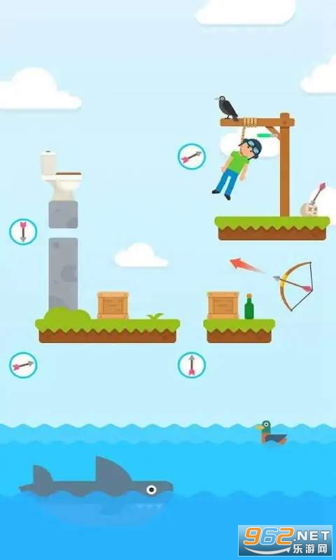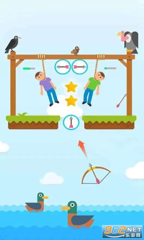 你想成为射击大师吗?那么不妨来试试这款游戏吧!在游戏中玩家需要使用弓箭搭救被绞刑台钓起来的人,滑动屏幕,估算射箭的轨迹,准确地将吊人的绳子射断。当然如果你射的不够快被吊着的人将会被绞死,或者你一个不小心也可能直接将人给射死哦!那么你准备好接受挑战了吗?