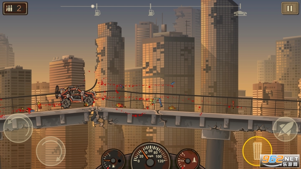 战车撞僵尸2 (Earn to Die 2)是一款以末日和僵尸为主题的游戏。游戏场景从无聊的沙漠搬回到具有层次感的城市里面,让玩家不再枯燥地面对着一望无际的沙漠。游戏共有10部汽车可供玩家解锁使用,其中包括一辆冰淇淋汽车。与前作相比,本作的汽车都是可损坏的,使得游戏难度进一步提高,感兴趣的玩家快来下载游戏试试吧!