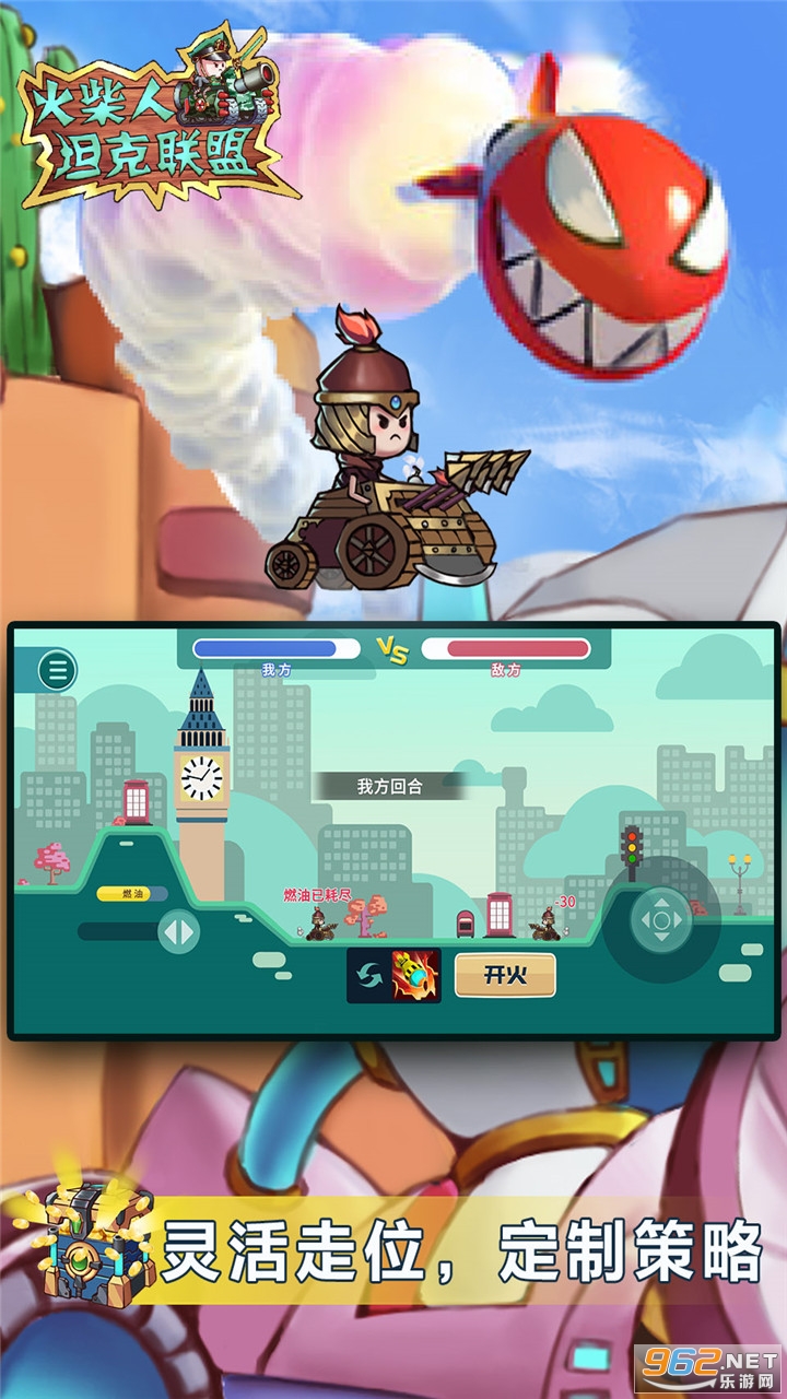 《火柴人坦克联盟游戏》是一款画面清新卡通的采用回合制抛物线战斗的趣味手游,类似弹弹堂游戏,游戏中玩家可以解锁各种不同的坦克冒险,可以升级强化提升坦克的属性,点击屏幕调整坦克的射击角度,预判炮弹的飞行轨迹,精准命中敌人。