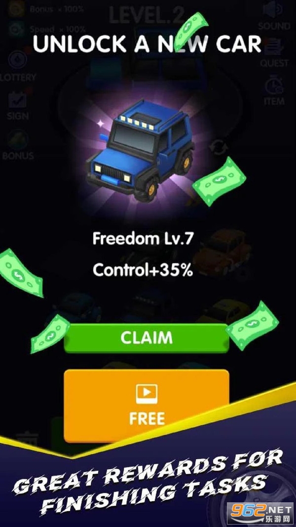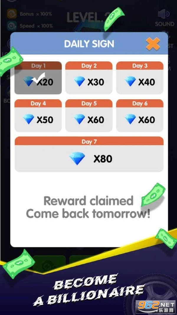 4、每天签到记得拿到钻石,这些钻石可用于购买赛车升级材料。