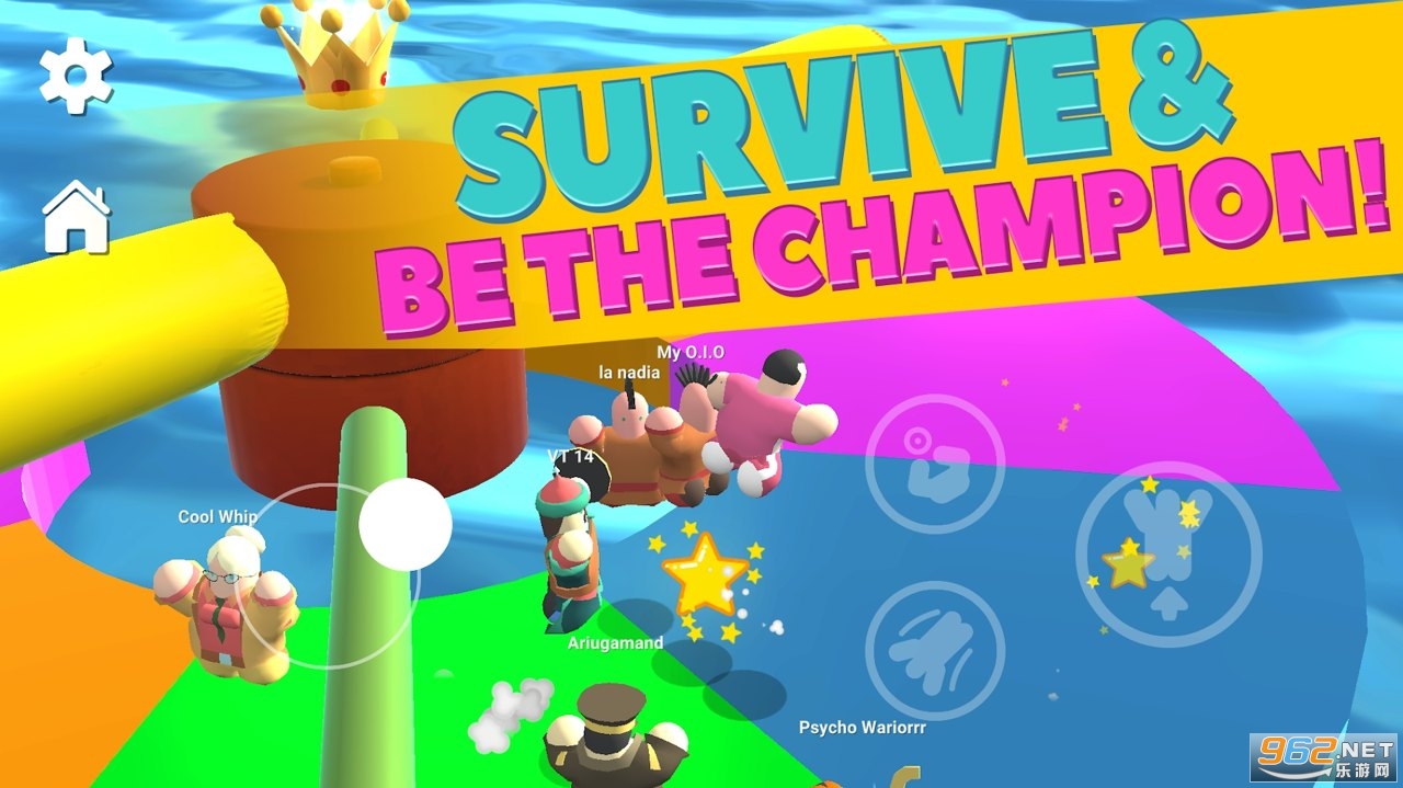 《秋豆极限派对竞赛游戏》是一款玩法跟糖豆人差不多的多人混战io竞技游戏,几十名玩家会出现在地图中,你要控制你的糖豆人向前冲,一边躲避障碍,一边攻击你的对手,踩着它们圆滚滚的身体前进,成为胜利者之一。