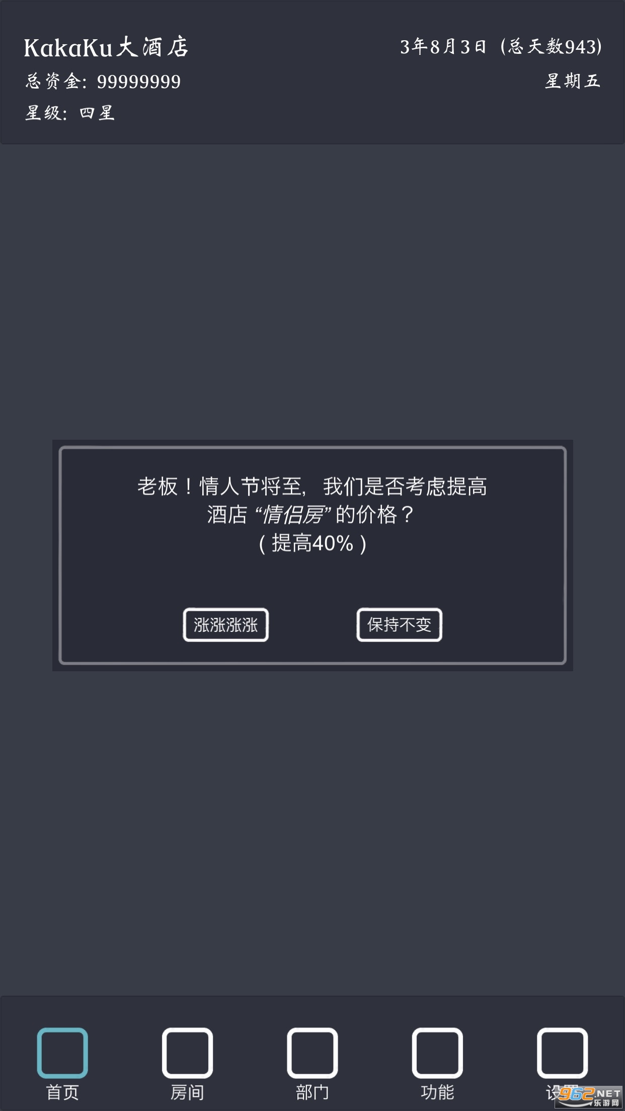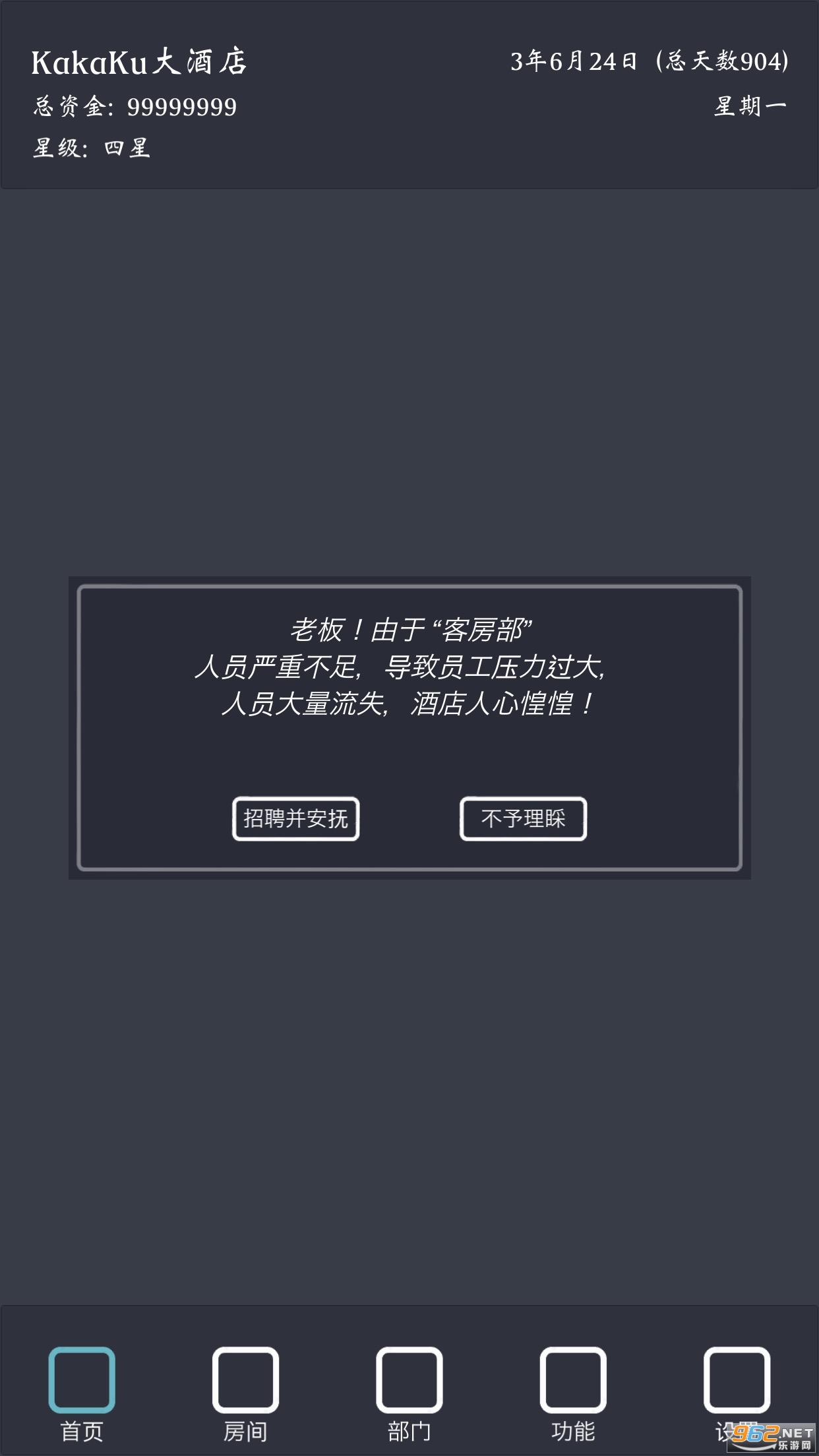 《模拟经营我的酒店》是一款文字题材模拟经营游戏,让你在文字的世界里经营自己的酒店,制定酒店的制度,招募员工,照顾员工的情绪,制定营销的策略等等,想尽一切办法将自己的酒店经营壮大,感兴趣的话就来下载吧!