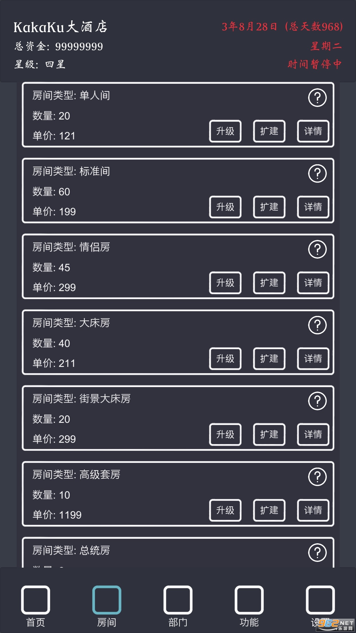 1、丰富的道具可以不断地提升自己的酒店等级,酒店等级越高可以获得更多的收益。